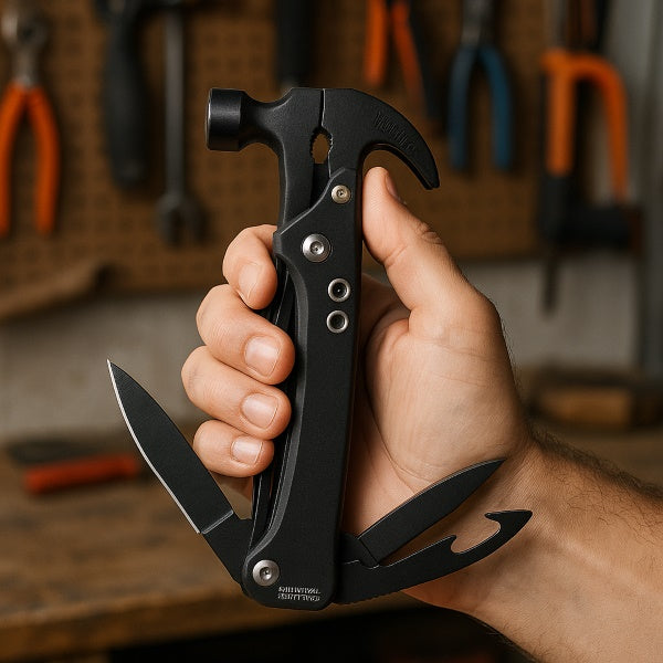 Το πολυεργαλείο HANDINOX συνδυάζει σφυρί, πένσα, μαχαίρι, κατσαβίδι και πολλά άλλα. Ιδανικό για κάθε εργασία, από κάμπινγκ μέχρι κατασκευές DIY.